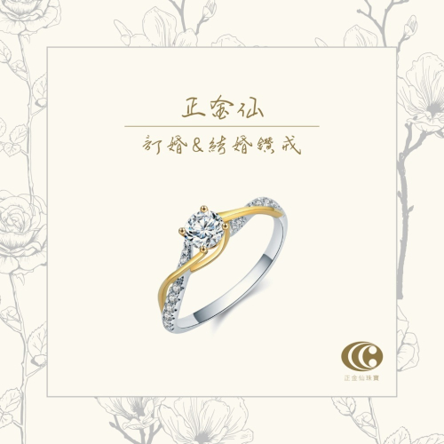 正金仙18K黃白金鑽石訂婚戒指是永恆愛情的完美象徵,這款戒指專為追求獨特與優雅風格的新人設計,結合優雅設計與精湛工藝,呈現出愛情的永恆承諾。